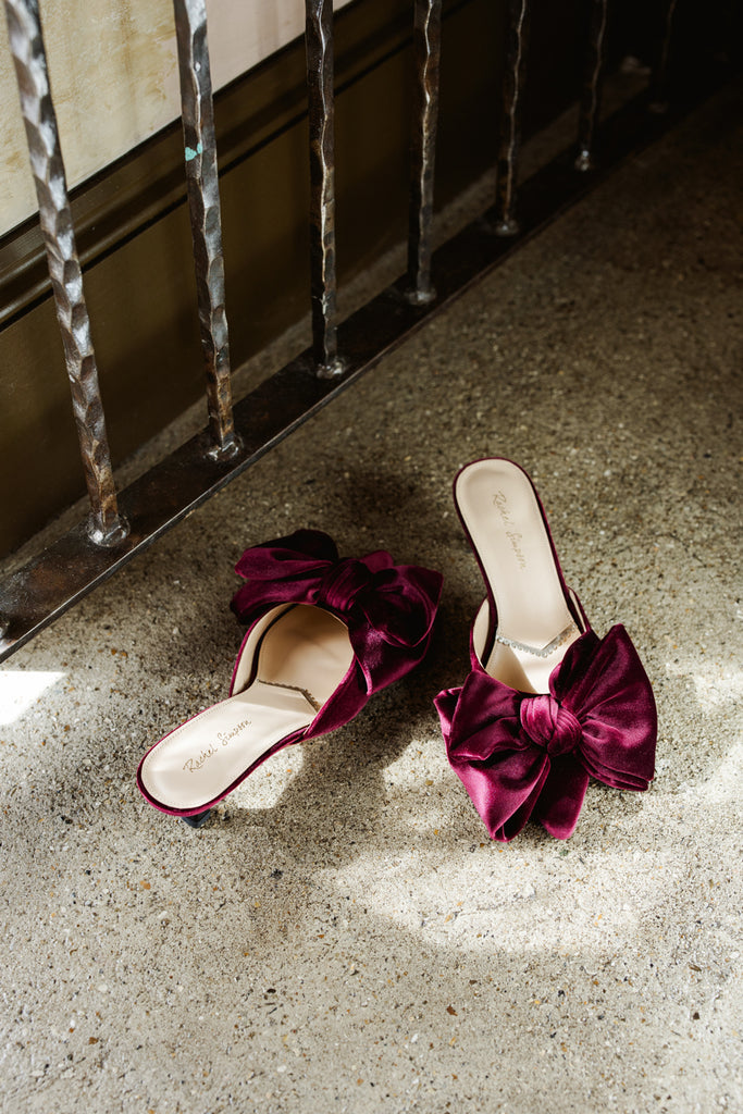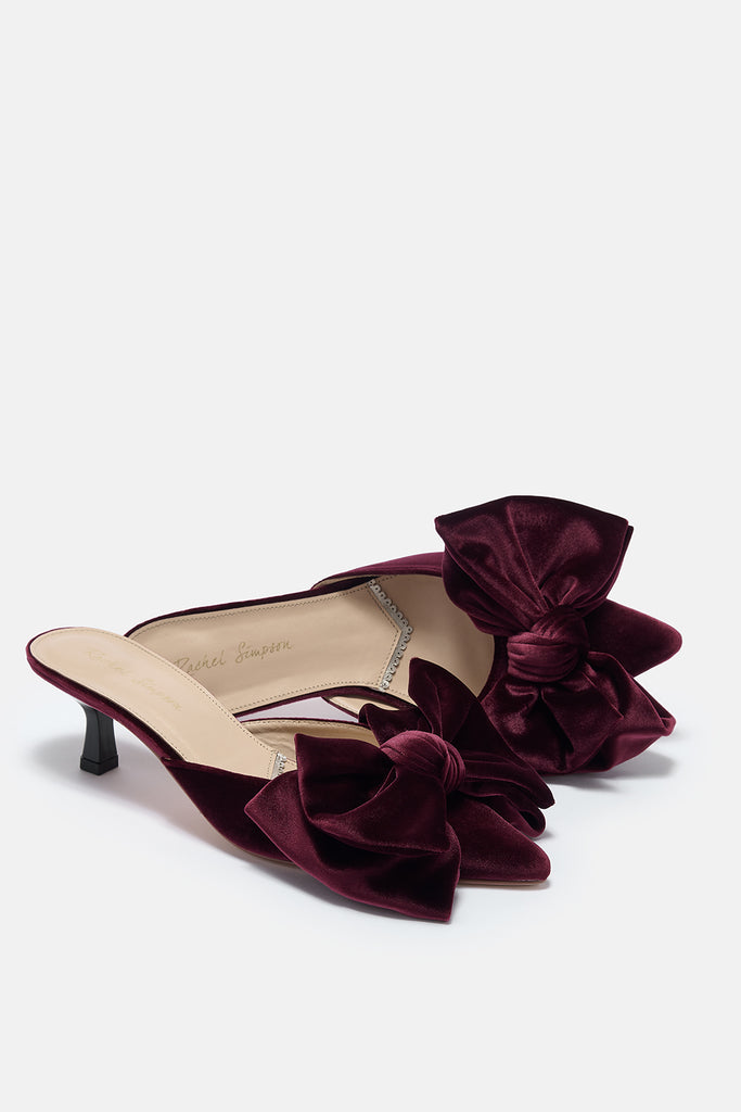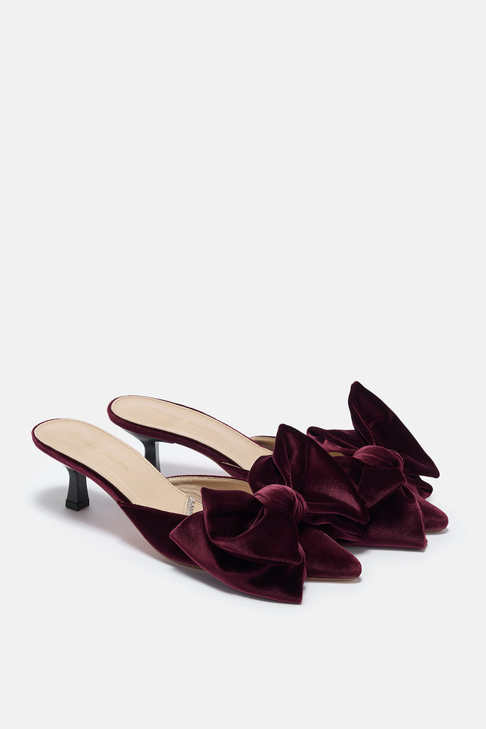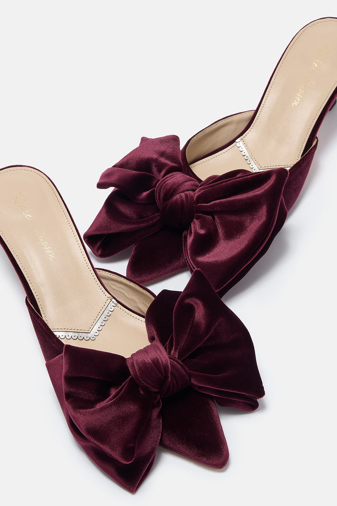 Renée Burgundy Plum Velvet Bow Mules