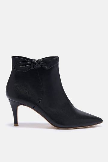 Ottilie Black Leather Bow Ankle Boots